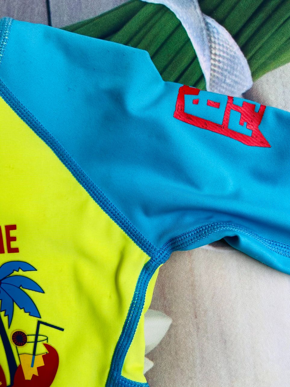 Bộ bơi bé trai chống nắng UPF50+, màu trắng tay vàng, dài tay, Paradise, YUKE