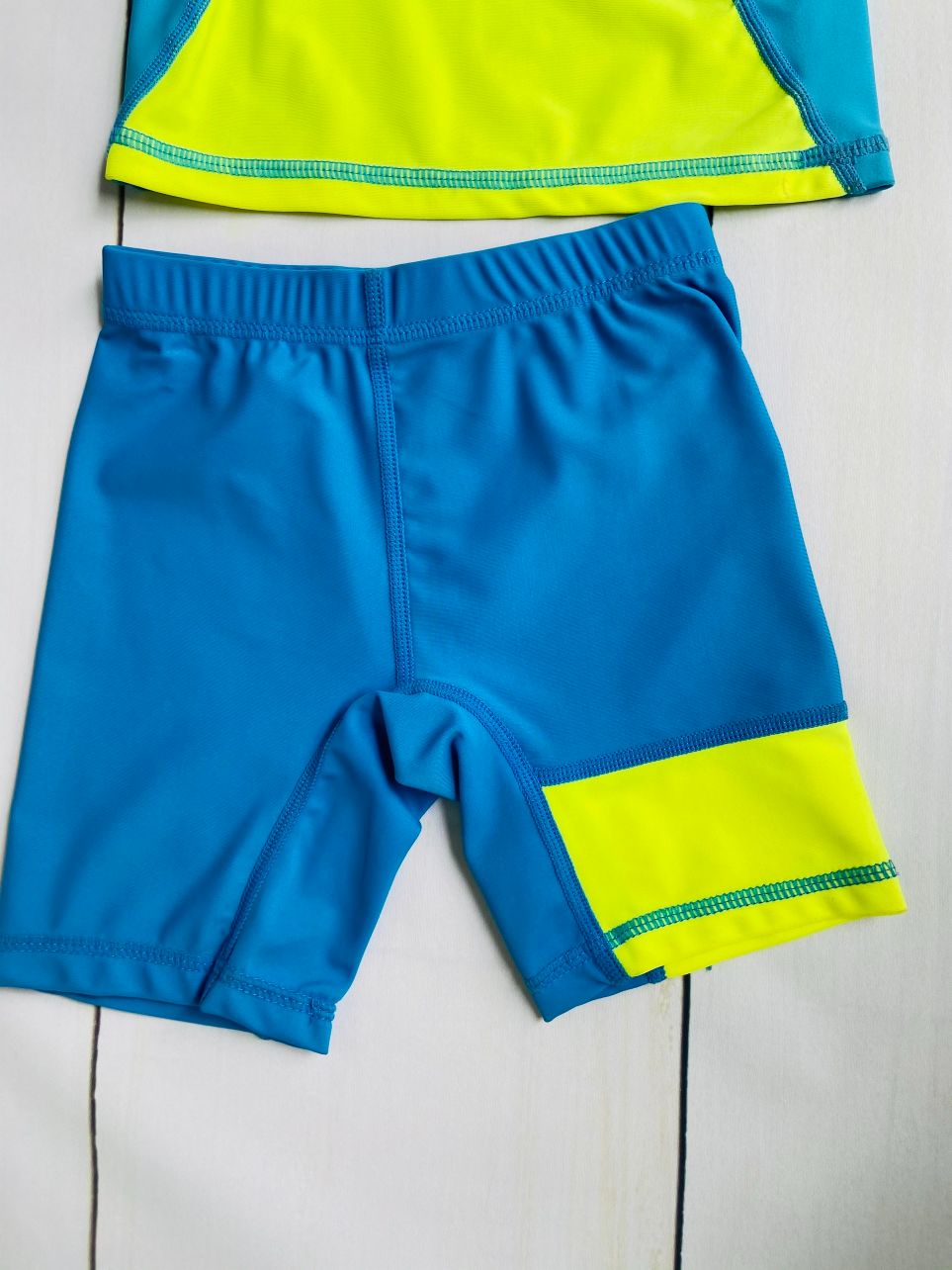 Bộ bơi cộc tay bé trai, màu trắng xanh, quần 2 lớp, chống nắng UPF 50+, YUKE