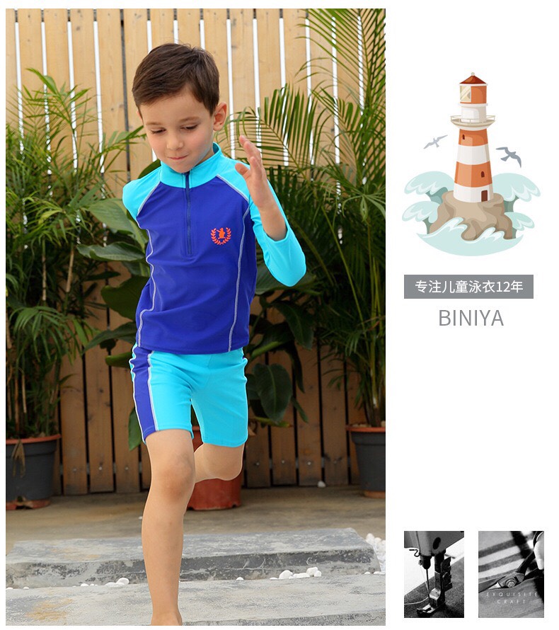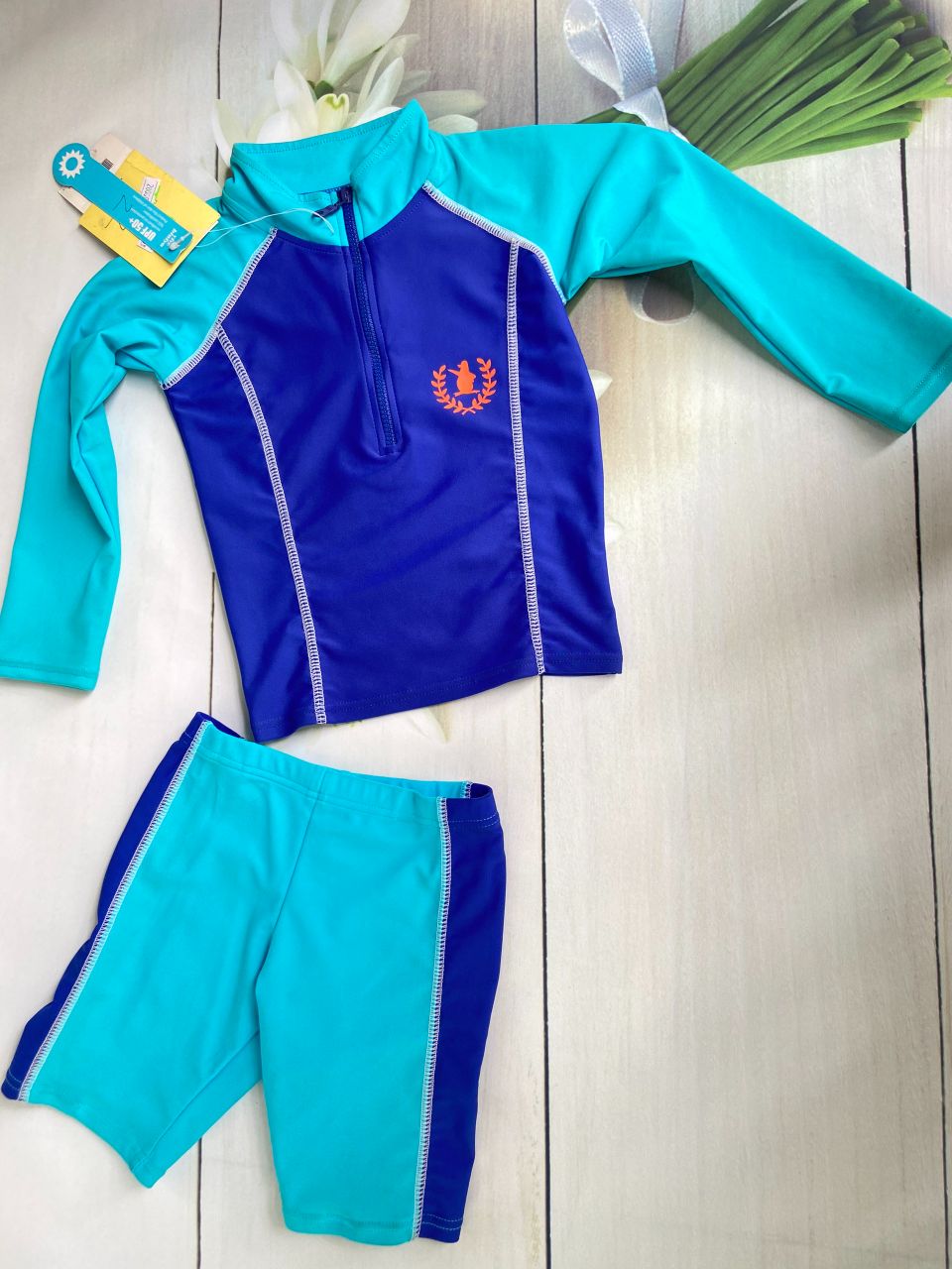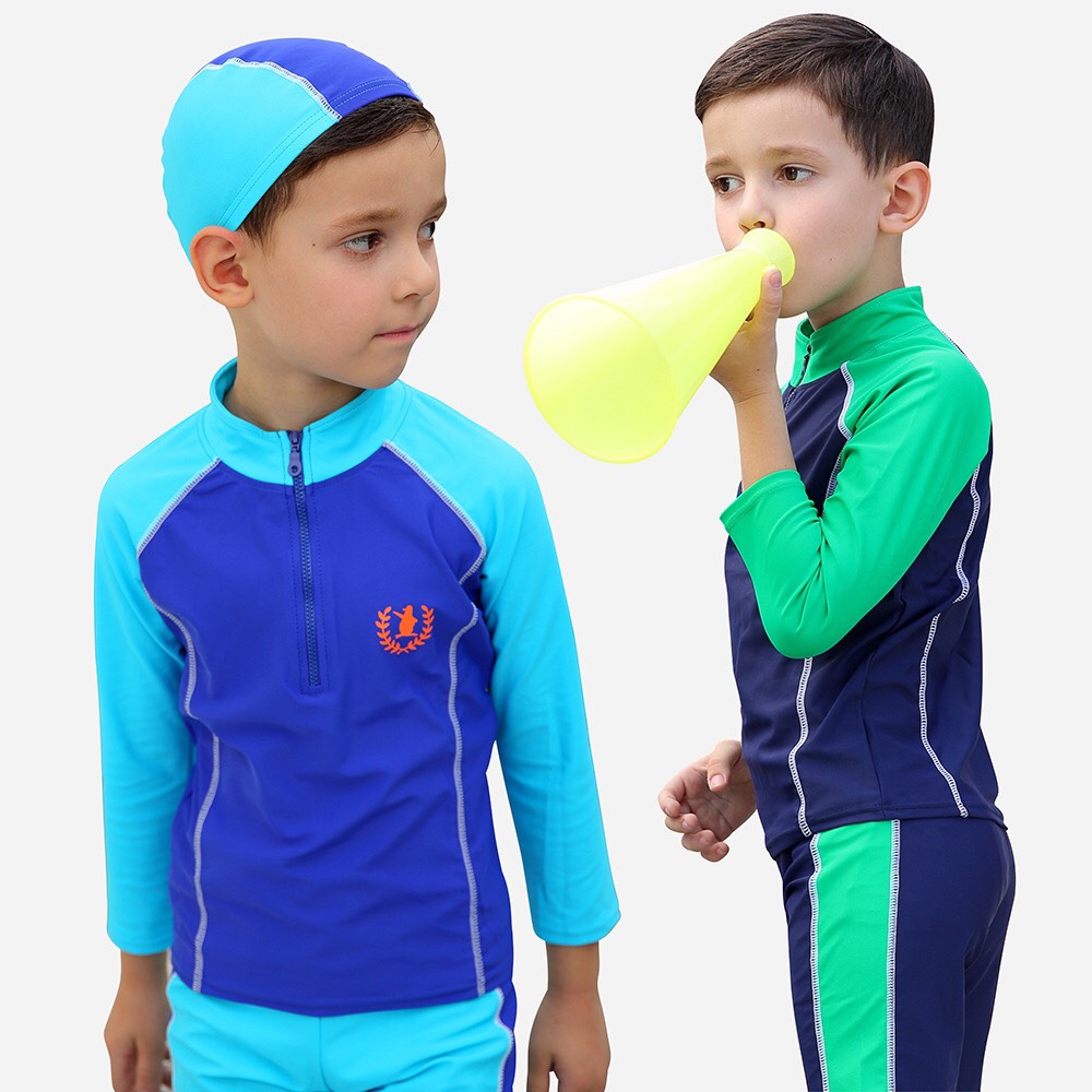 Bộ bơi bé trai chống nắng UPF50+, màu xanh, dài tay, Paradise, YUKE