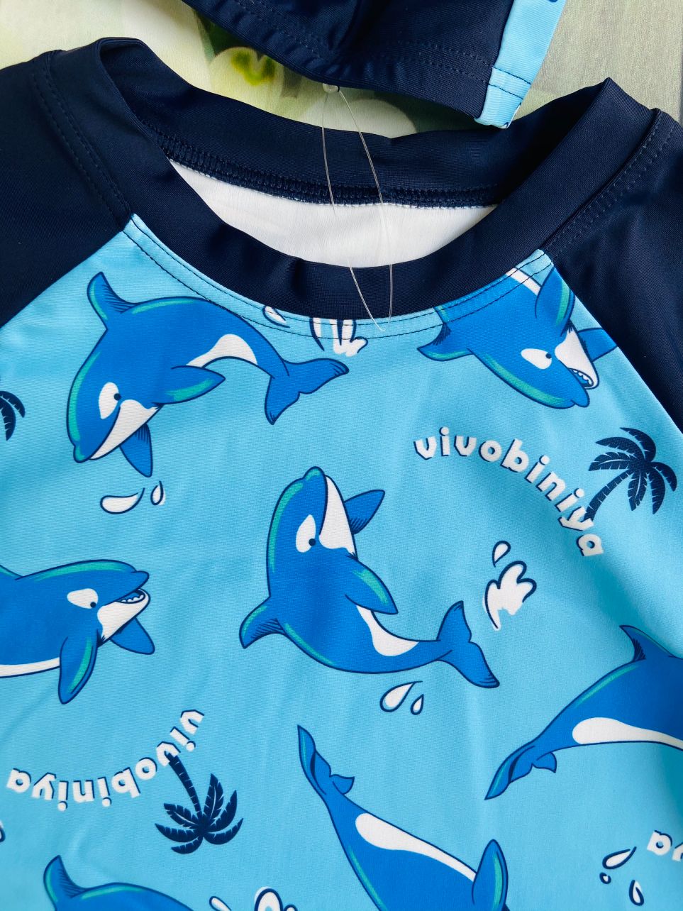 Bộ bơi bé trai dài xanh hình cá, quần dài rời, Vivo Biniya