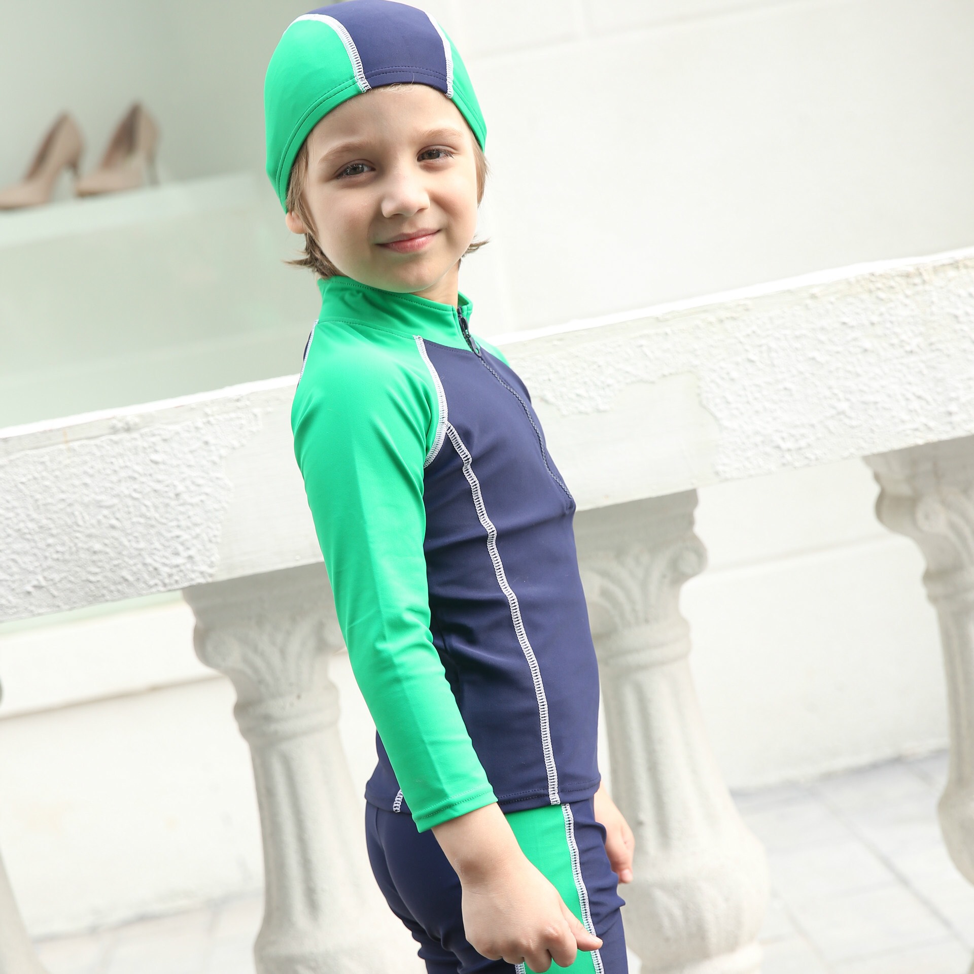 Bộ bơi bé trai chống nắng UPF50+, màu xanh, dài tay, Paradise, YUKE