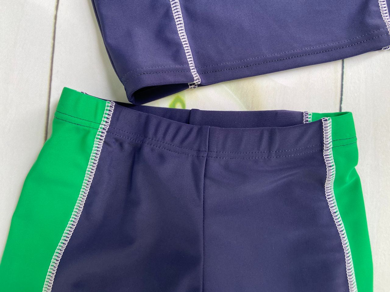 Bộ bơi cộc tay bé trai, màu trắng xanh, quần 2 lớp, chống nắng UPF 50+, YUKE