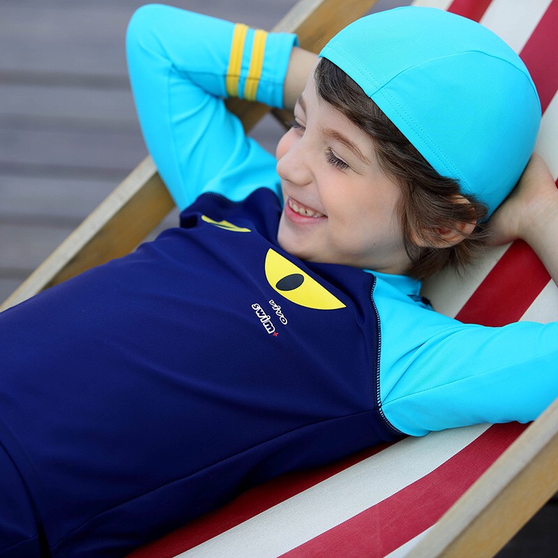Bộ bơi bé trai chống nắng UPF50+, màu xanh, dài tay, Paradise, YUKE