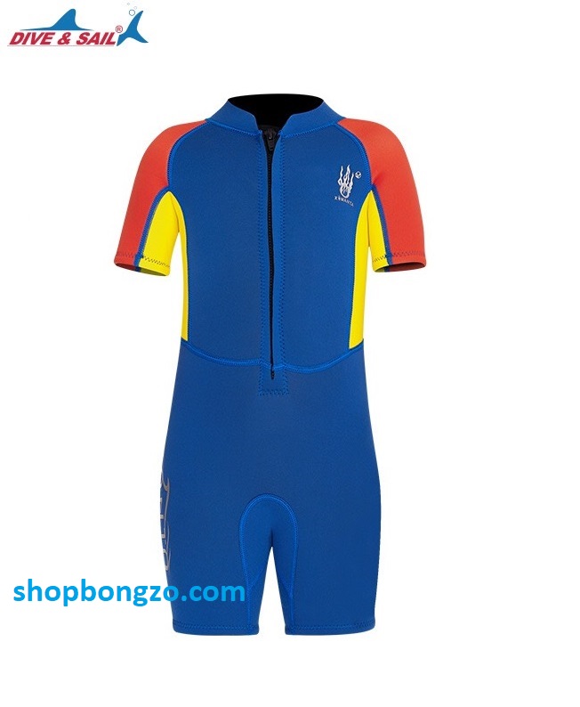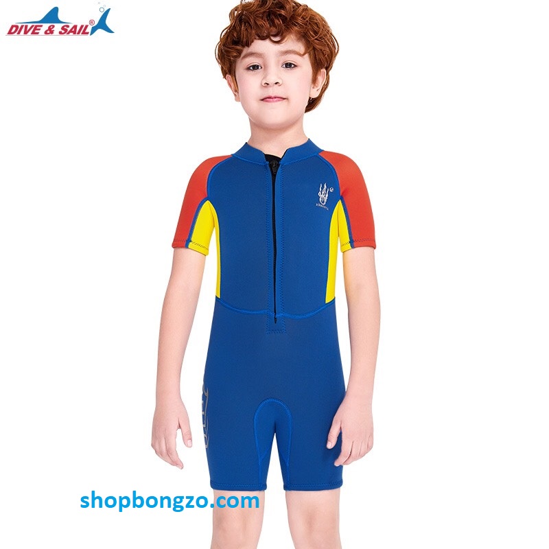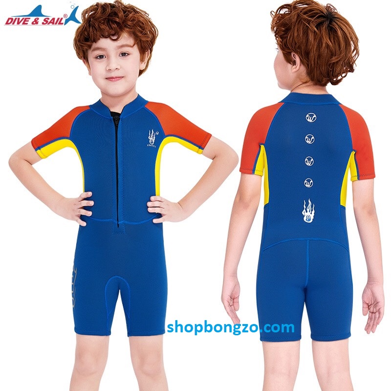 Bộ bơi giữ nhiệt bé trai, dài tay, màu xanh, siêu nhân, vải dày 2.5mm, Dive & Sail