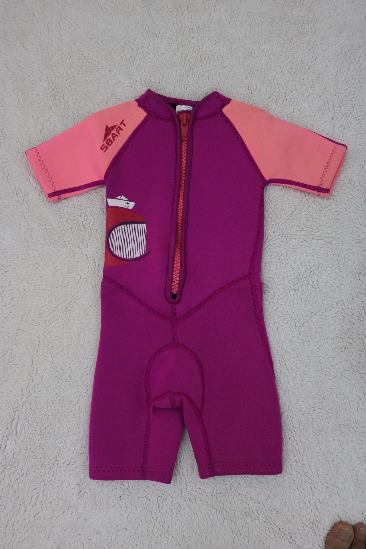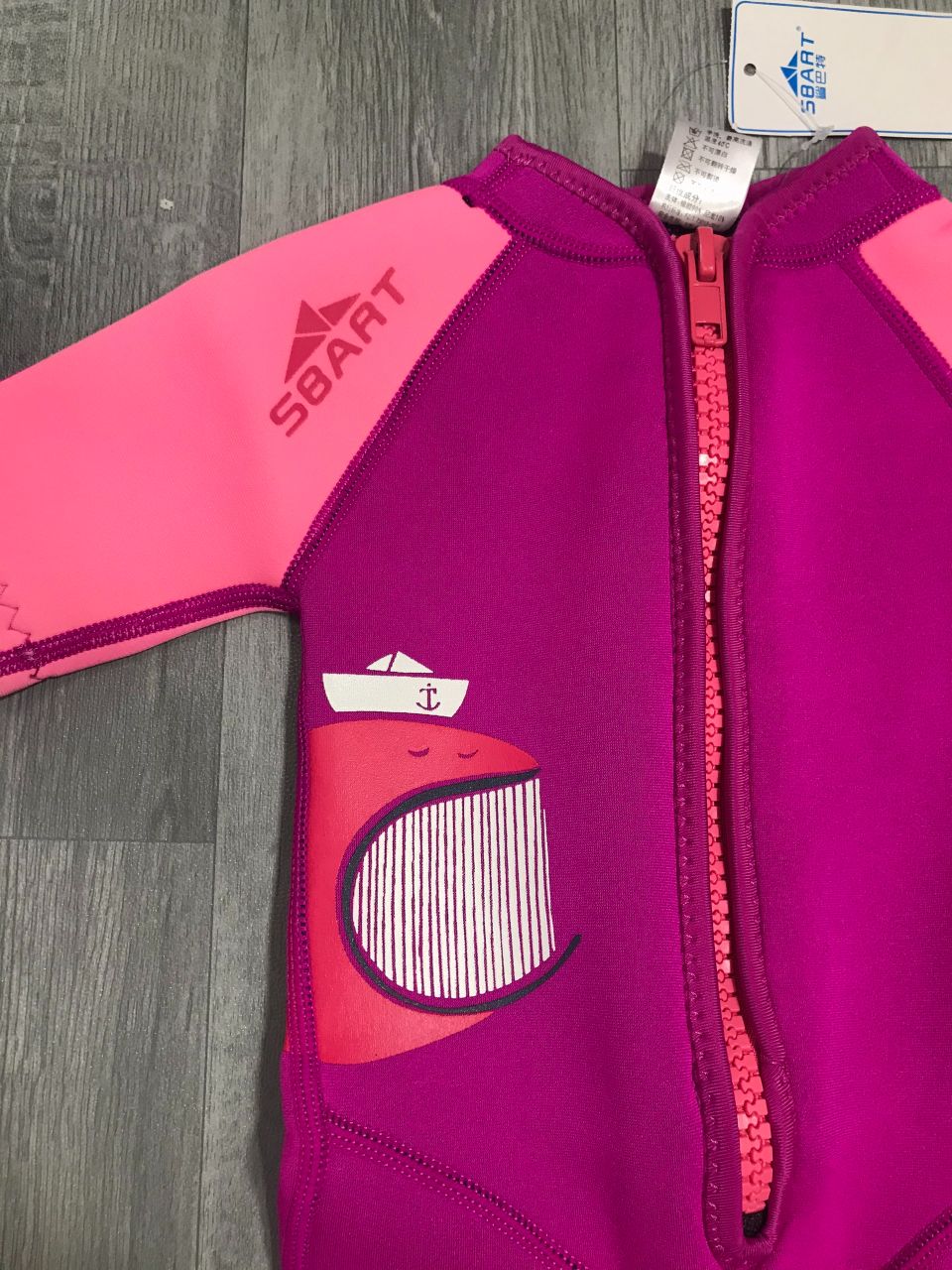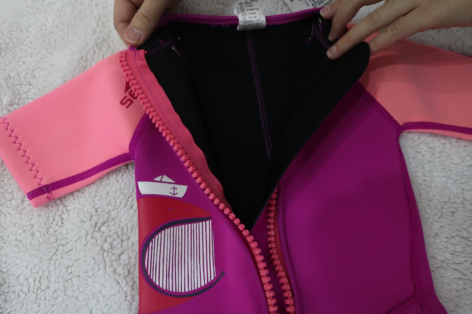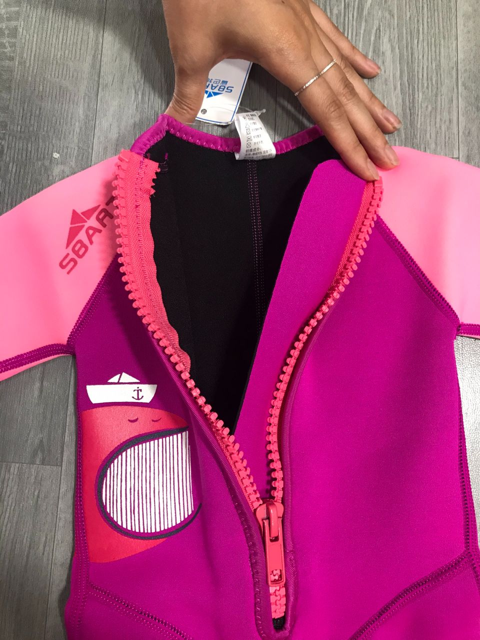 Bộ bơi giữ nhiệt bé gái dài, đen tay hồng, vải dày 2.5mm, Dive & Sail