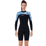 Bộ giữ nhiệt nữ, dài quần cộc, Đen, vai xanh trắng, M129562F-1.5mm - DIVE&SAIL