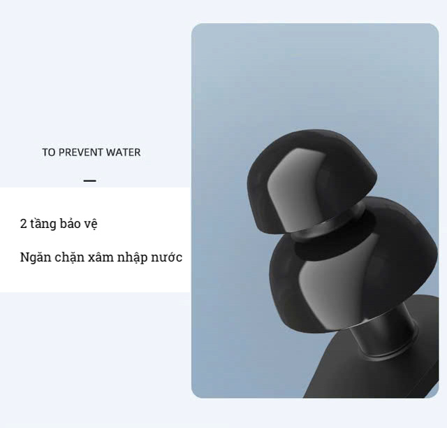- Nút tai 2 tầng bảo vệ, ngăn chặn xâm nhập nước