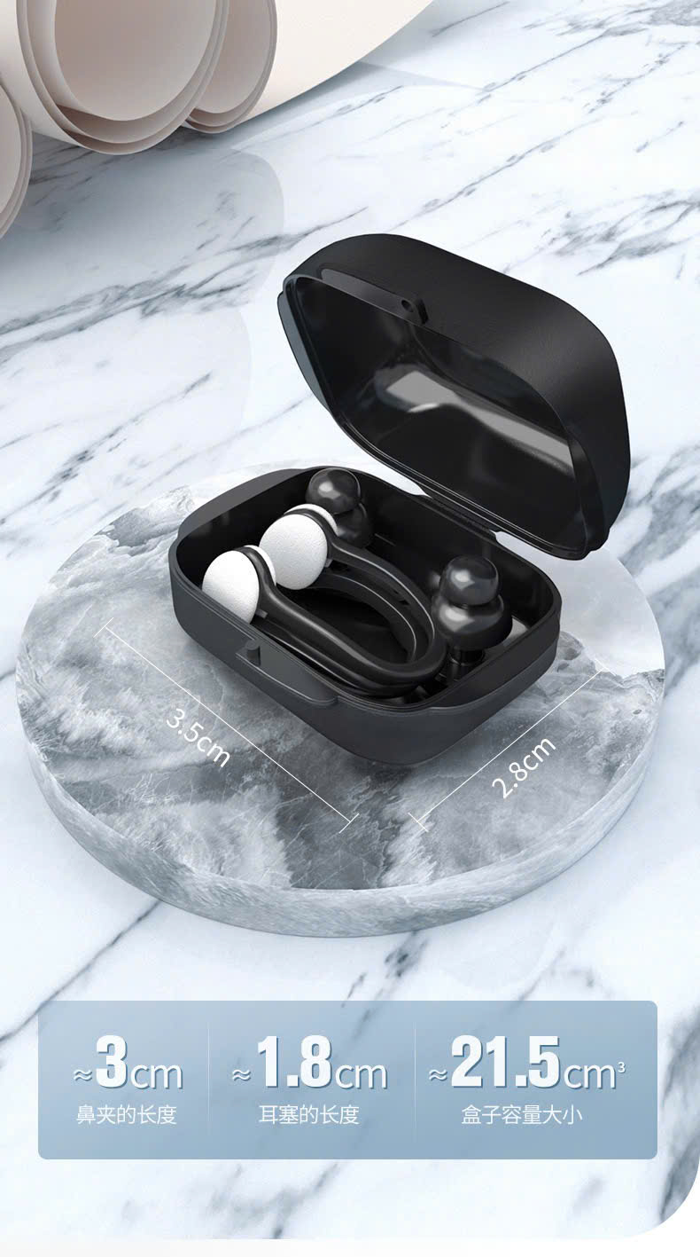 Bộ sản phẩm gồm có : 1 đôi nút tai, 1 kẹp mũi, hộp đựng chính hãng