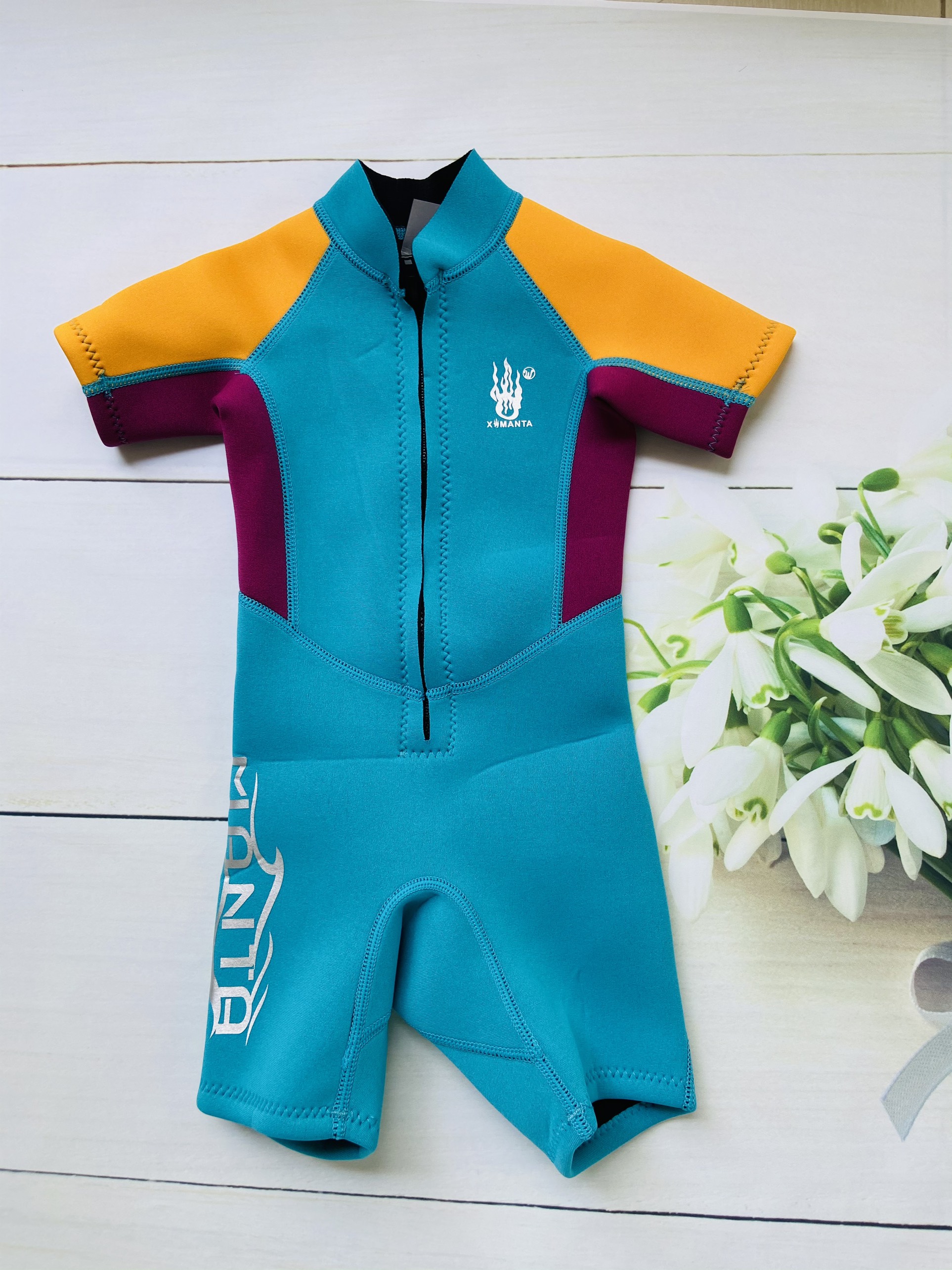 Bộ bơi giữ nhiệt bé trai, dài tay màu xanh vàng, vải dày 2.5mm, Dive Sail