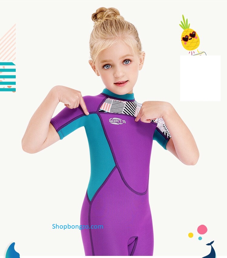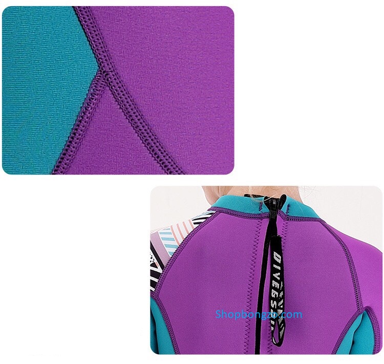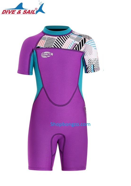 Bộ bơi giữ nhiệt bé gái, màu tím đậm, vải dày 2.5mm DIVE&SAIL- M150659K