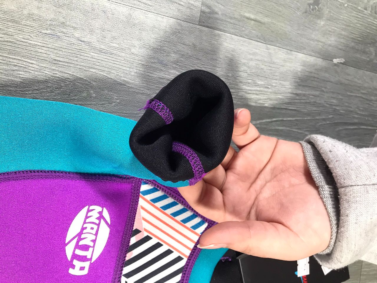 - Chất liệu vải gồm 3 tầng : lớp ngoài cùng vải nylon đàn hồi, lớp giữa là neoprene 2mm, lớp trong bằng vải nylon đàn hồi màu đen