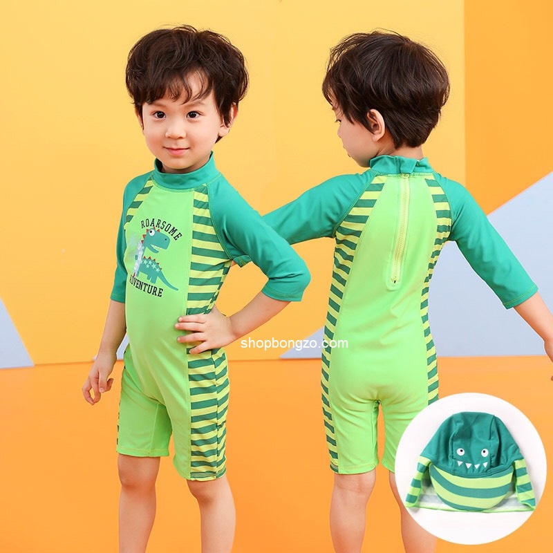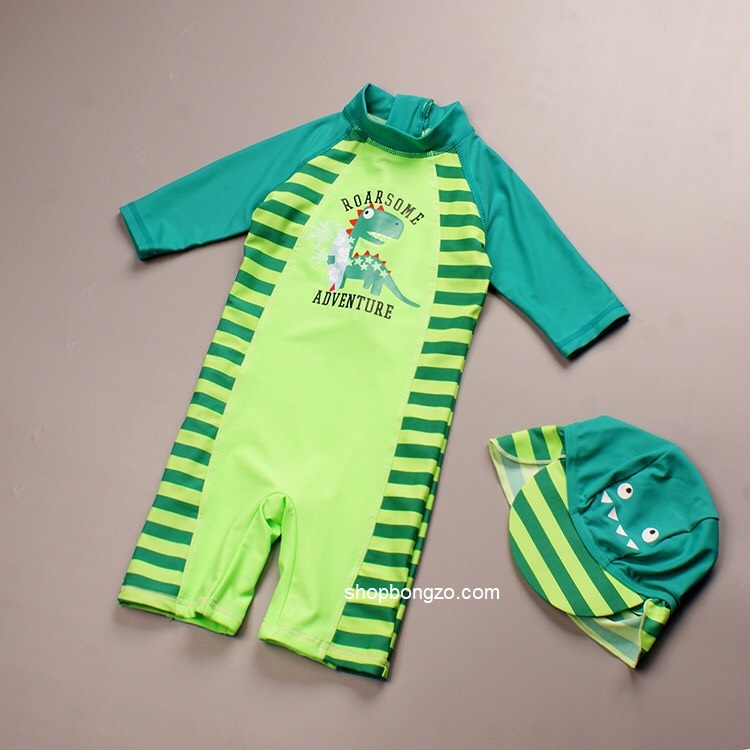 Bộ bơi xanh khủng long, kèm mũ che gáy
