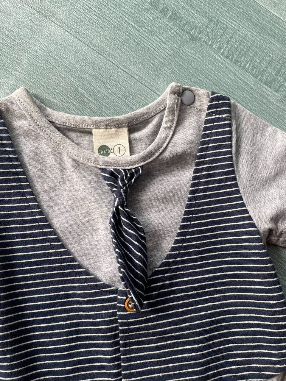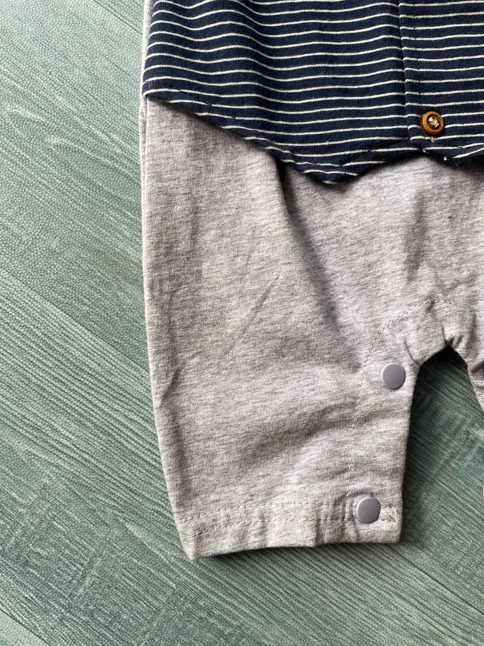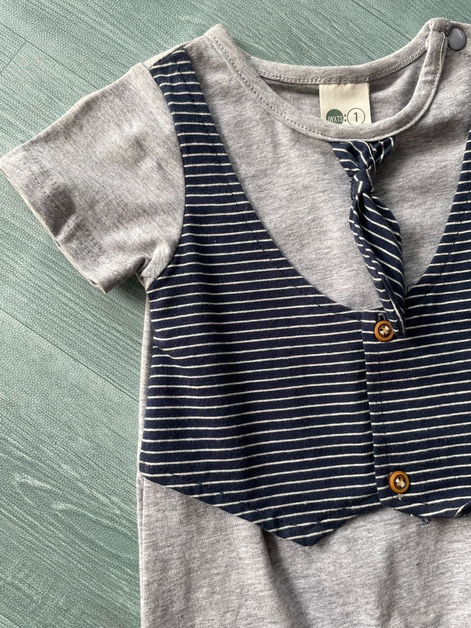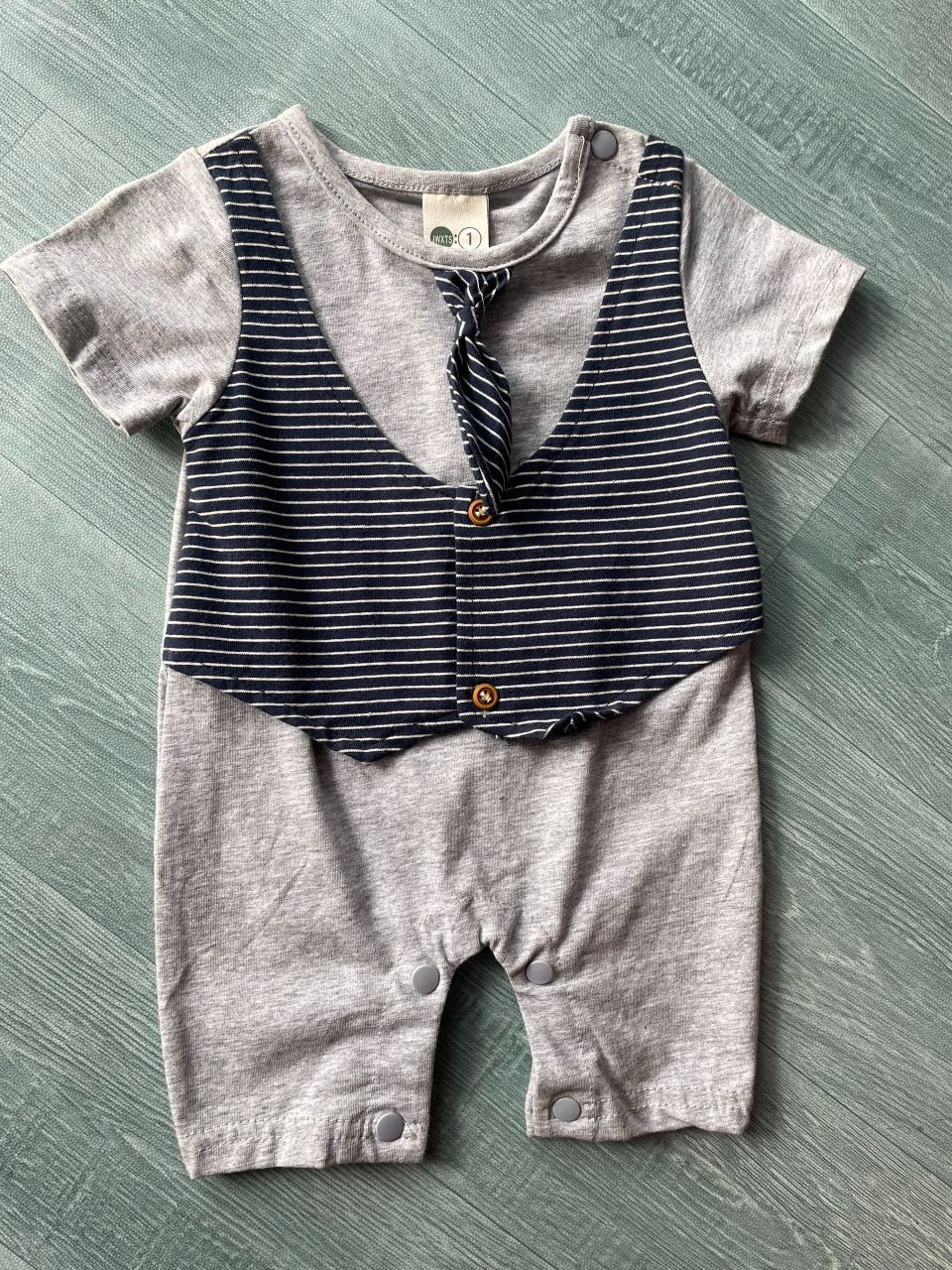 Body coton cộc bé trai, màu ghi liền gile than kẻ, cavart
