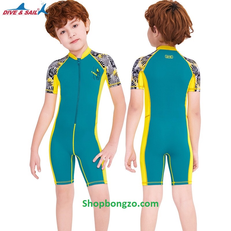 Bộ bơi bé trai dài tay kéo khoá, xanh than, quần cộc rời, Bopetao