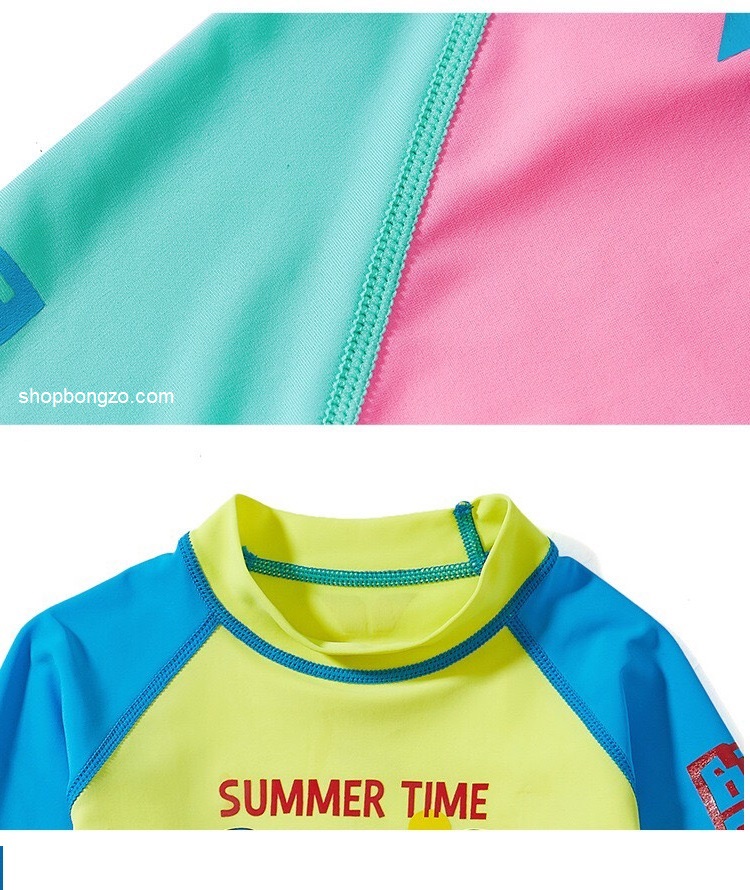 Bộ bơi bé gái hồng tay xanh, vải chống nắng chống Clo, dài tay, Momasong(Korea)