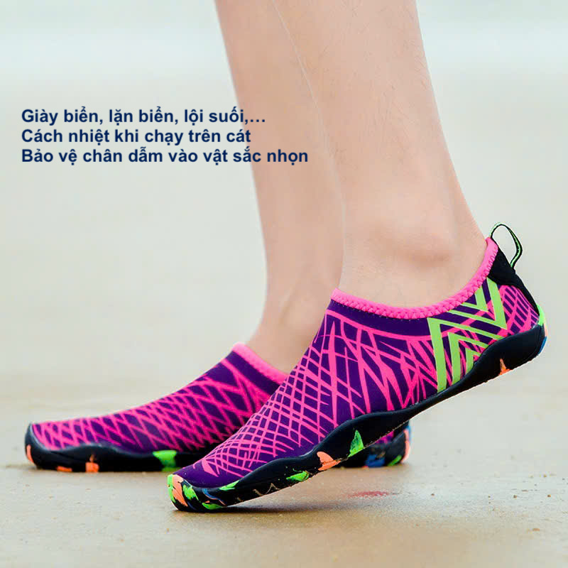 Giày biển, lặn biển, lội suối, bảo vệ chân, màu tím, đế dày cao cấp