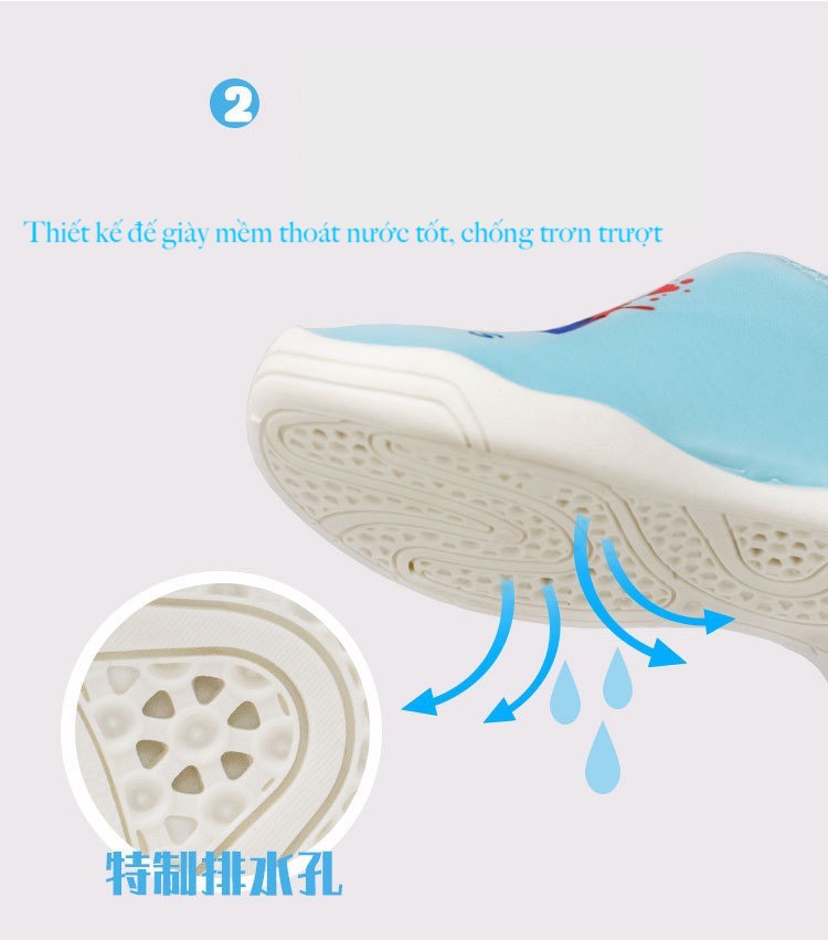 + Đế giày thiết kế lỗ thoát nước nhanh chóng.