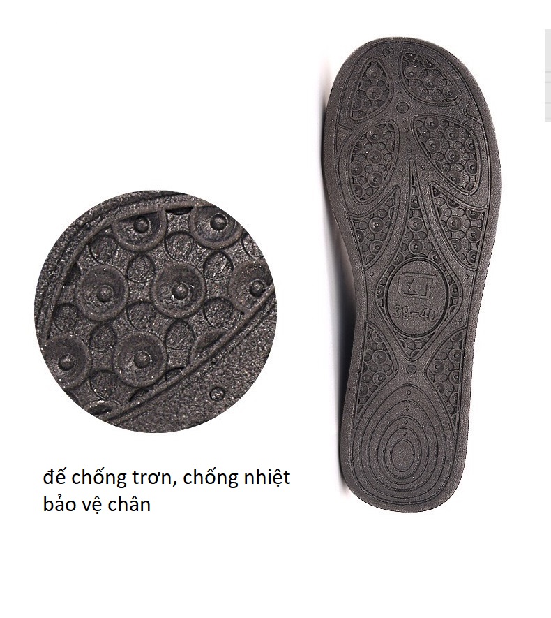 + Đế giày được làm bằng nhựa tổng hợp có tác dụng chống nhiệt, thiết kế chống trơn