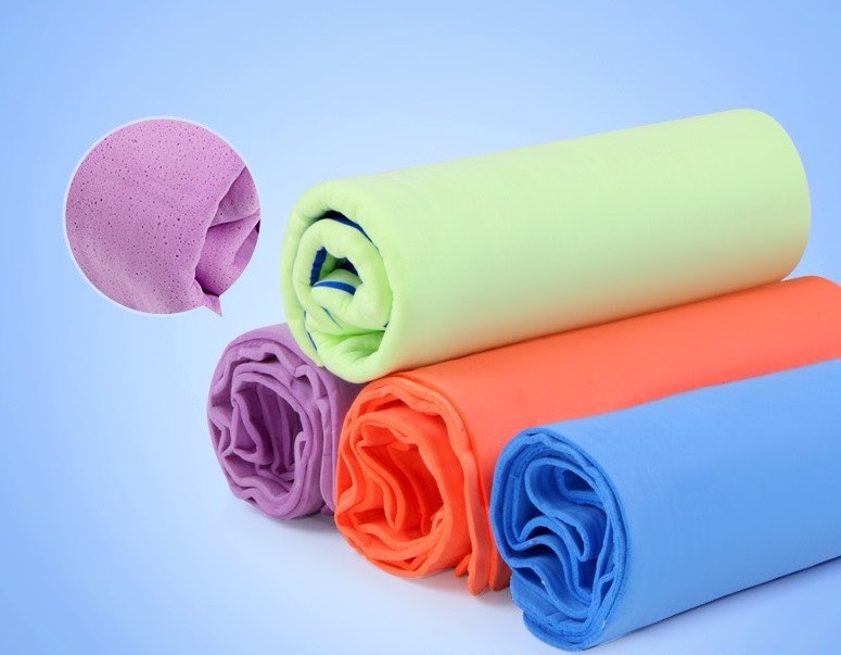 - Khả năng thấm hút cực cao chỉ 1 lần lau làm cho nước ở bề mặt da khô nhanh chóng, khăn có thể thấm hút được lượng nước 6-8 lần trọng lượng khăn.