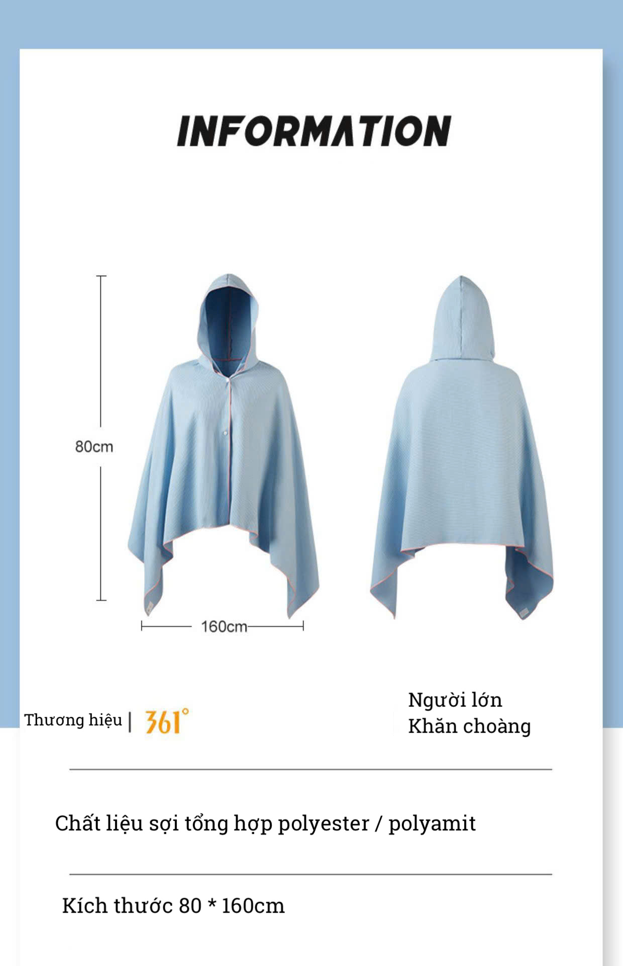 Khăn tắm nhanh khô 361, khoác choàng liền mũ, thấm hút nhanh, tắm biển, bơi, chơi thể thao