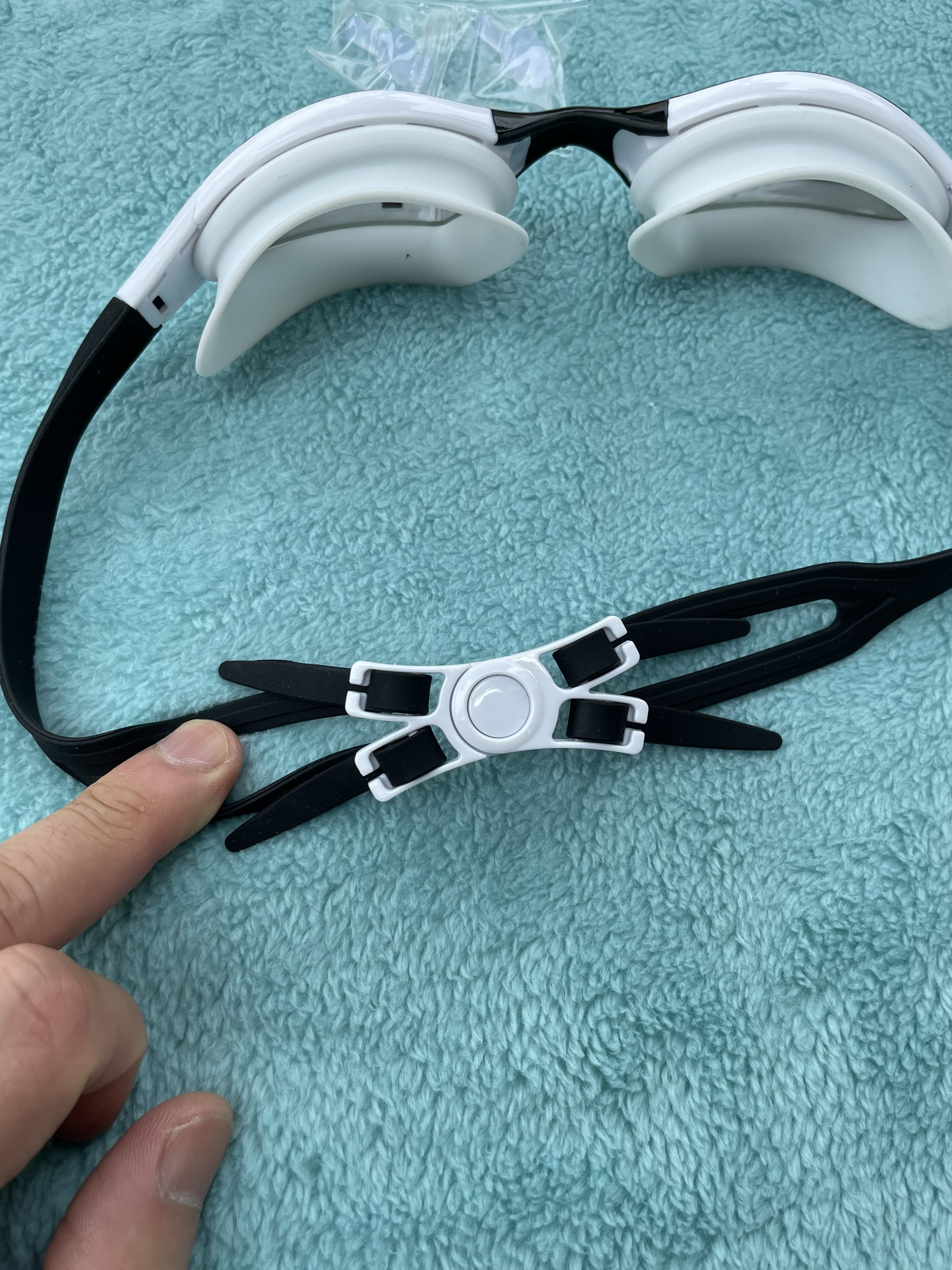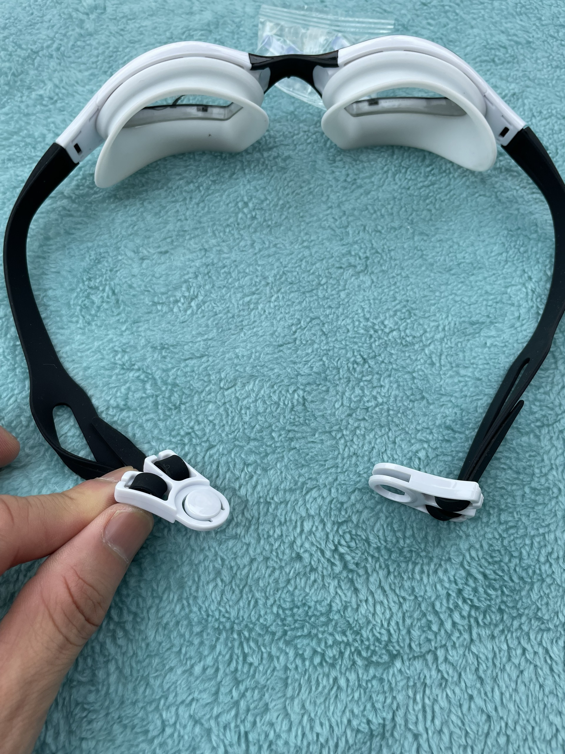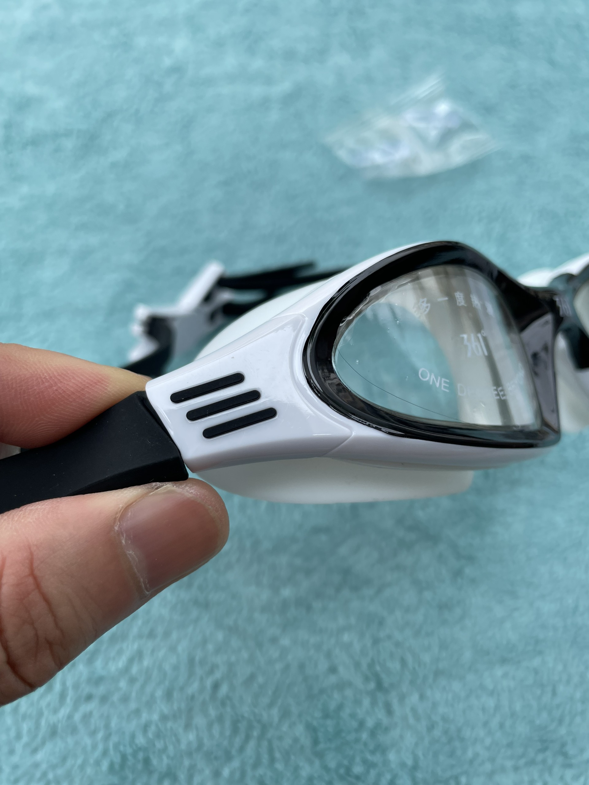 Kính bơi chống nước 361, đen trắng, dây cài nút
