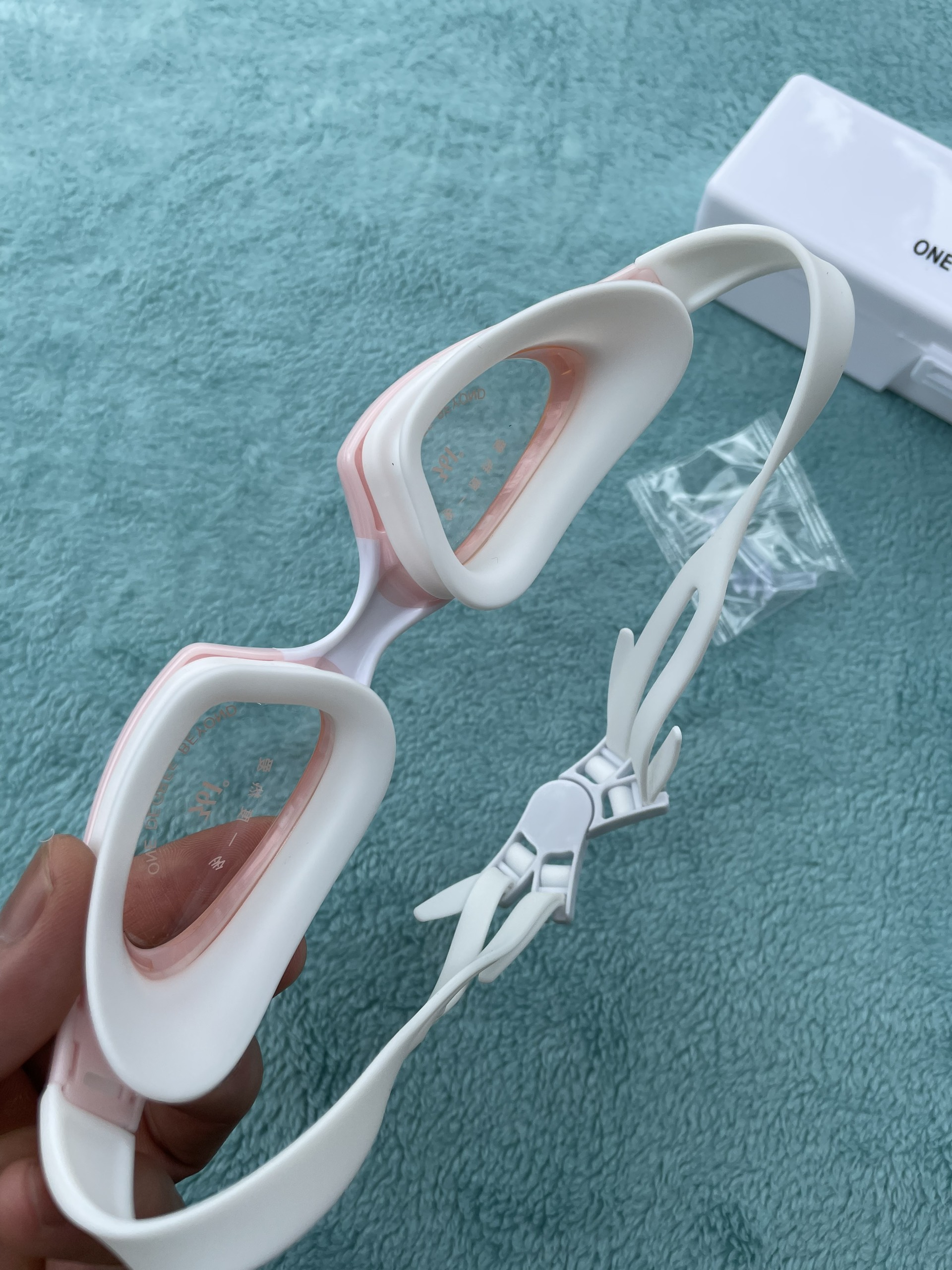 Kính bơi chống nước 361, màu hồng, liền nút tai, dây cài nút