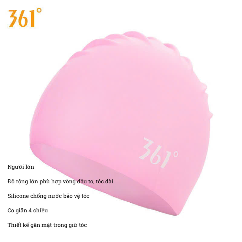 Mũ bơi silicone 361 người lớn, kích thước lớn cho người tóc dài, chống nước, co giãn cao