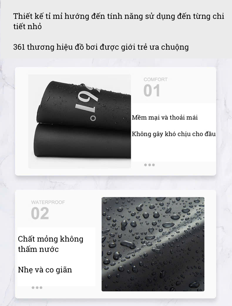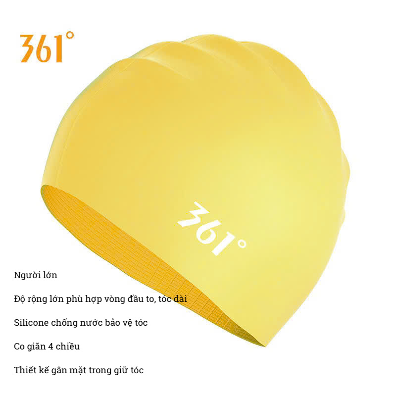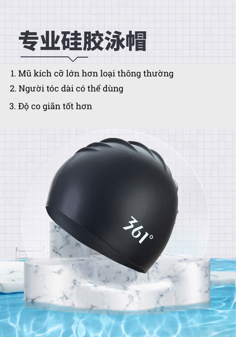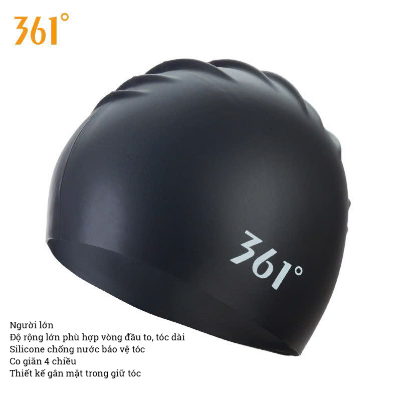 Mũ bơi 361 silicone chống nước, size lớn phù hợp cả vòng đầu to, bơi lội và thi đấu tập luyện