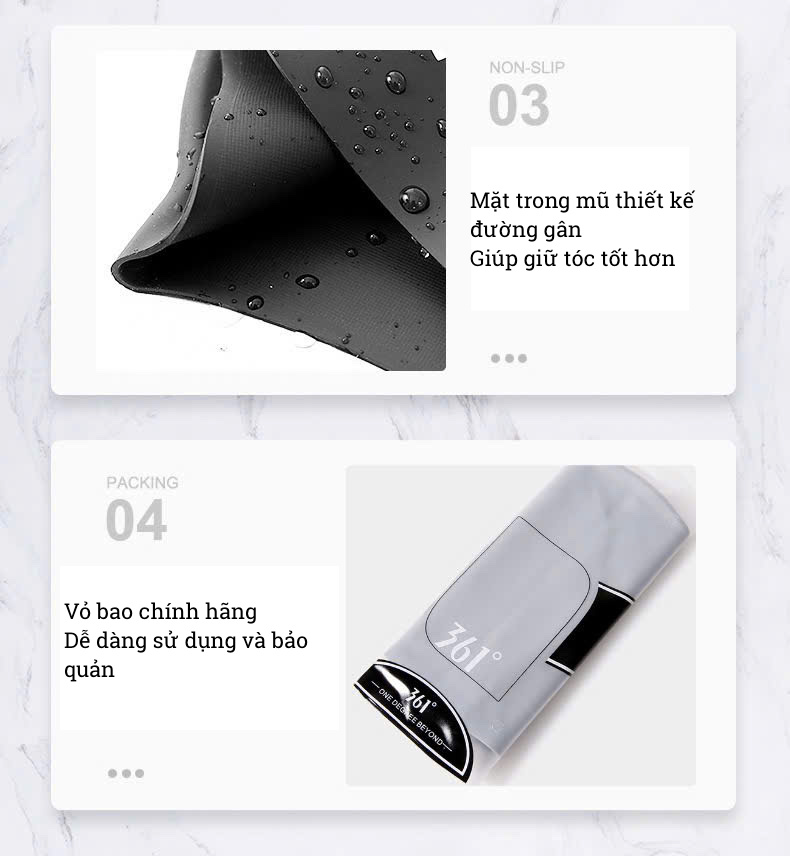 - Mũ hoàn toàn bằng silicon để tăng tuổi thọ cũng như tránh rách mũ, nên đội mũ đúng hướng dẫn trên vỏ bao