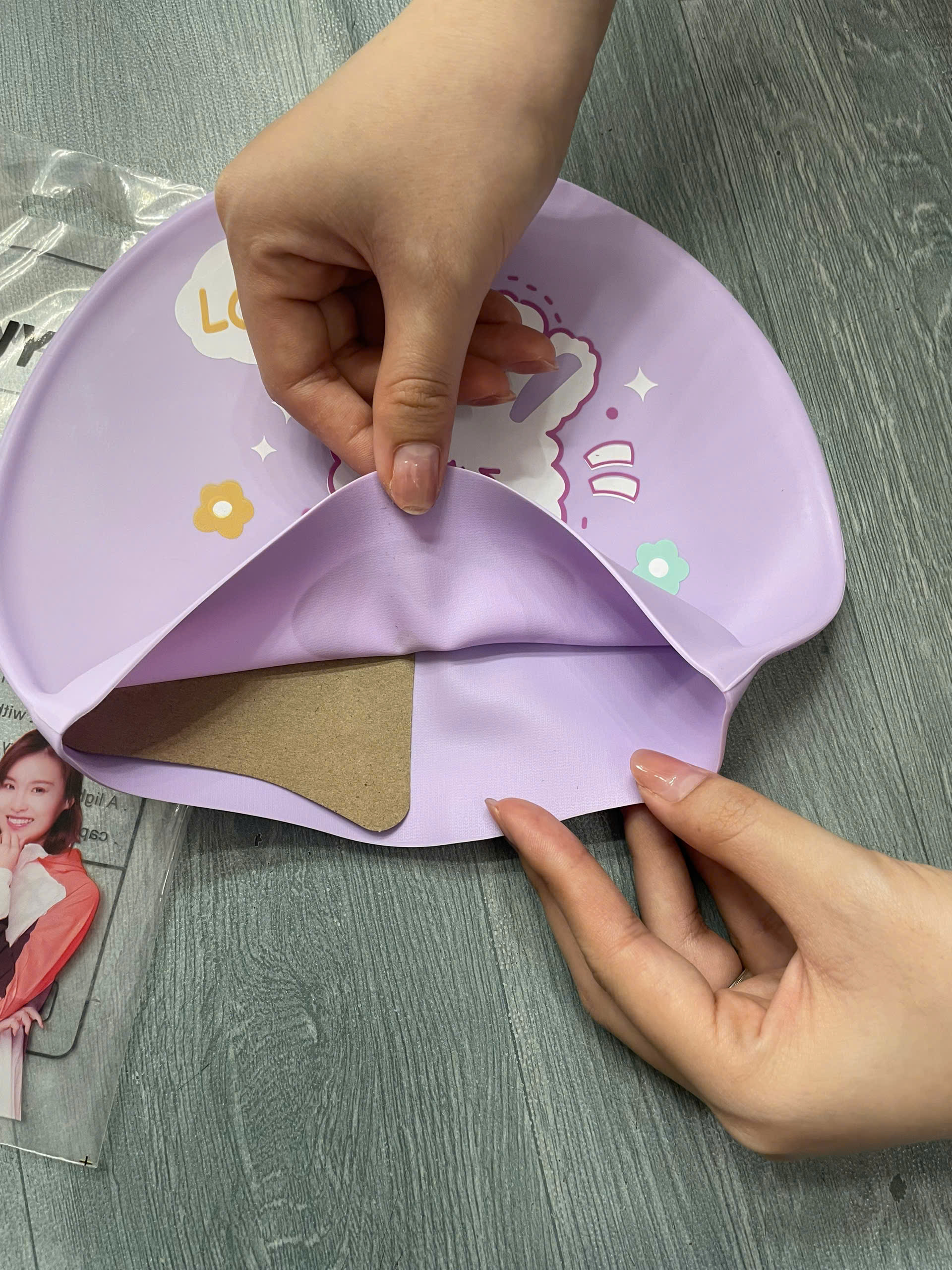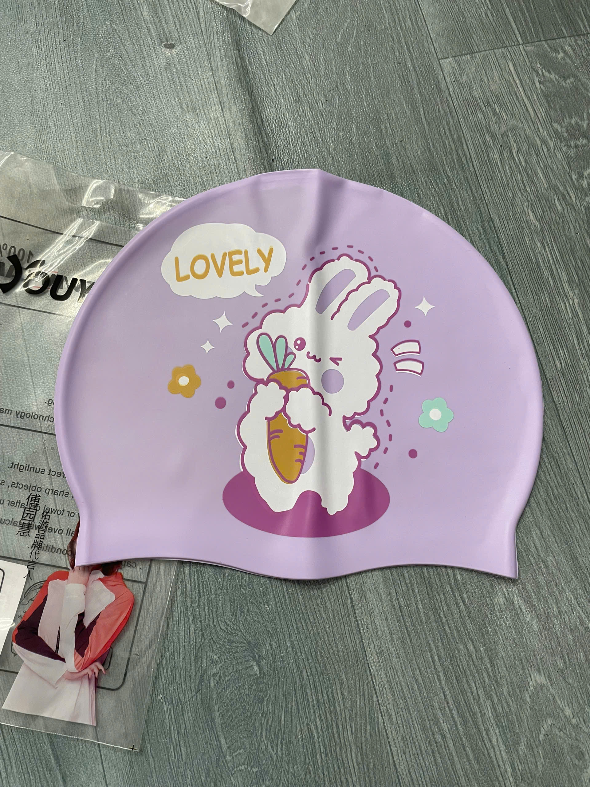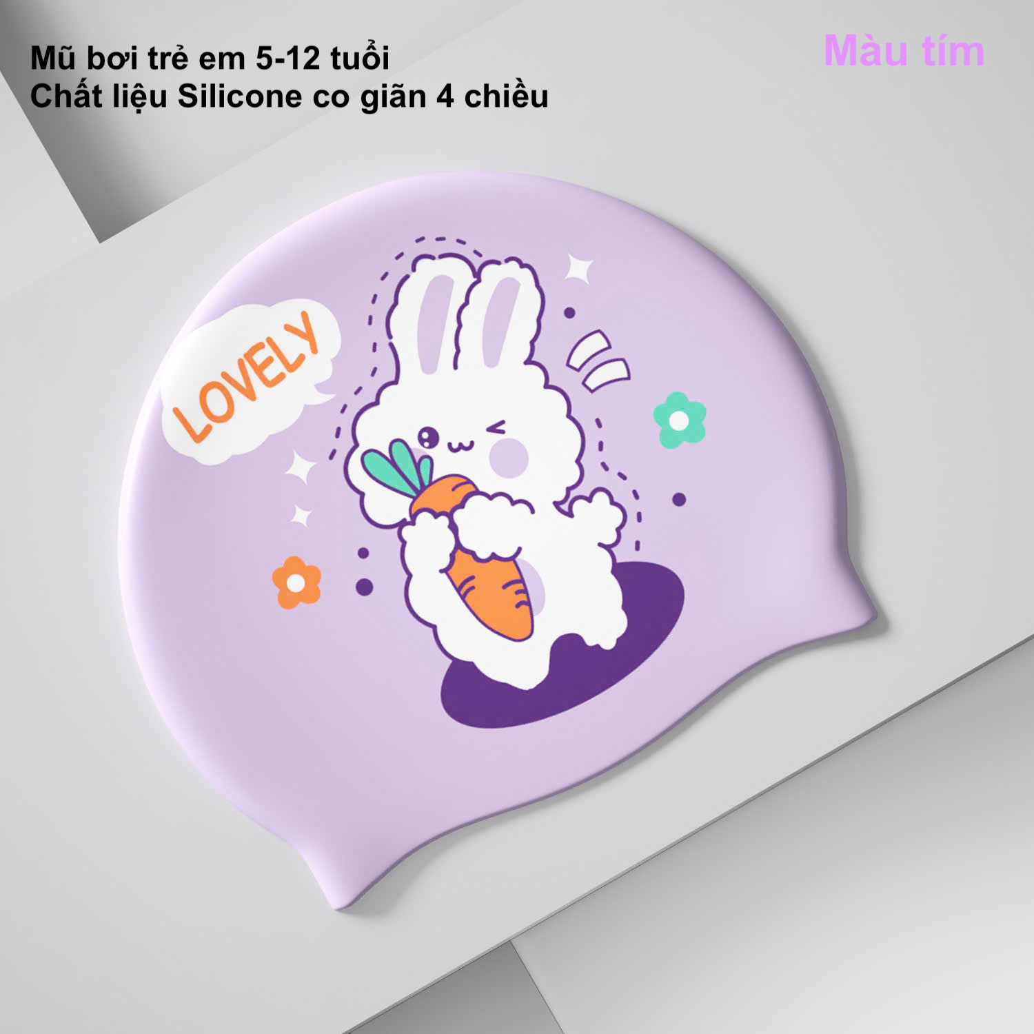 Mũ bơi chống nước trẻ em, chất liệu silicone cao cấp, co giãn,màu tím, hình thỏ