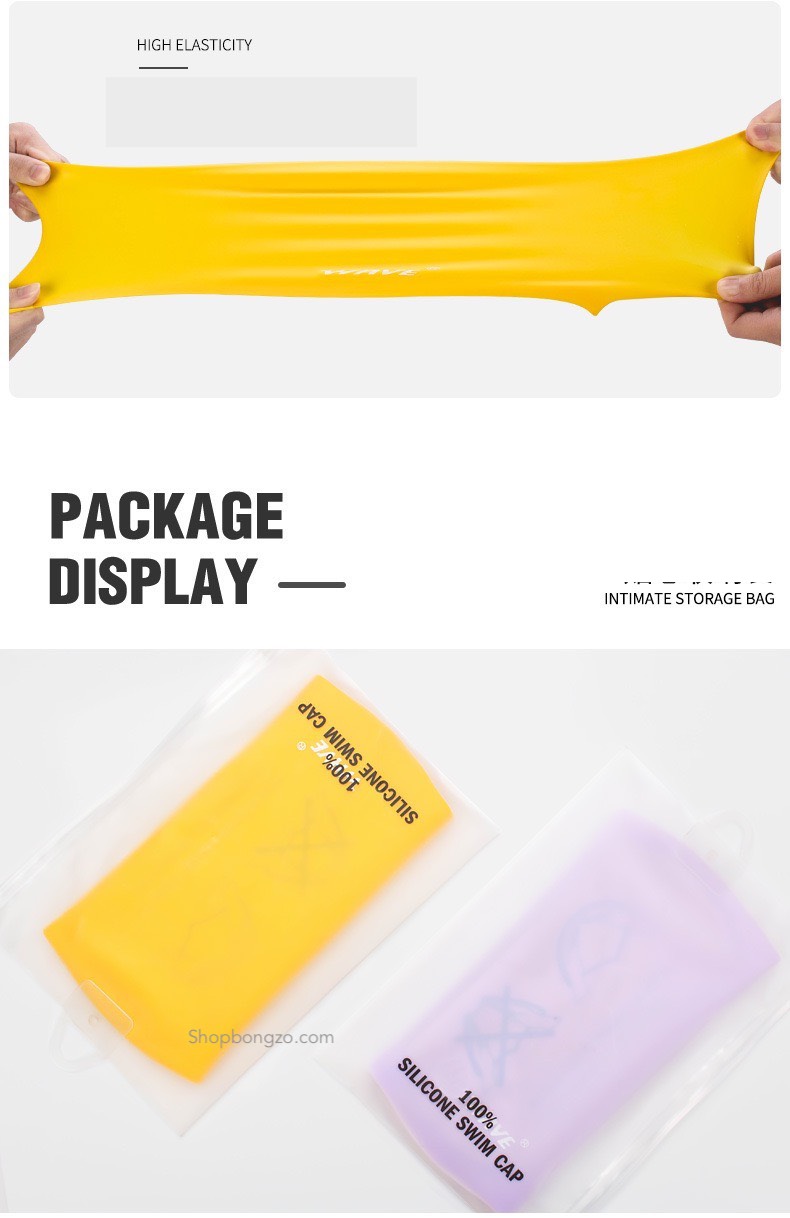 - Mũ bơi silicon có độ đàn hồi cao, ít bị giãn nhưng không chống thủng. Do đó, lưu ý không dùng móng tay và kẹp tóc khi đội mũ.
