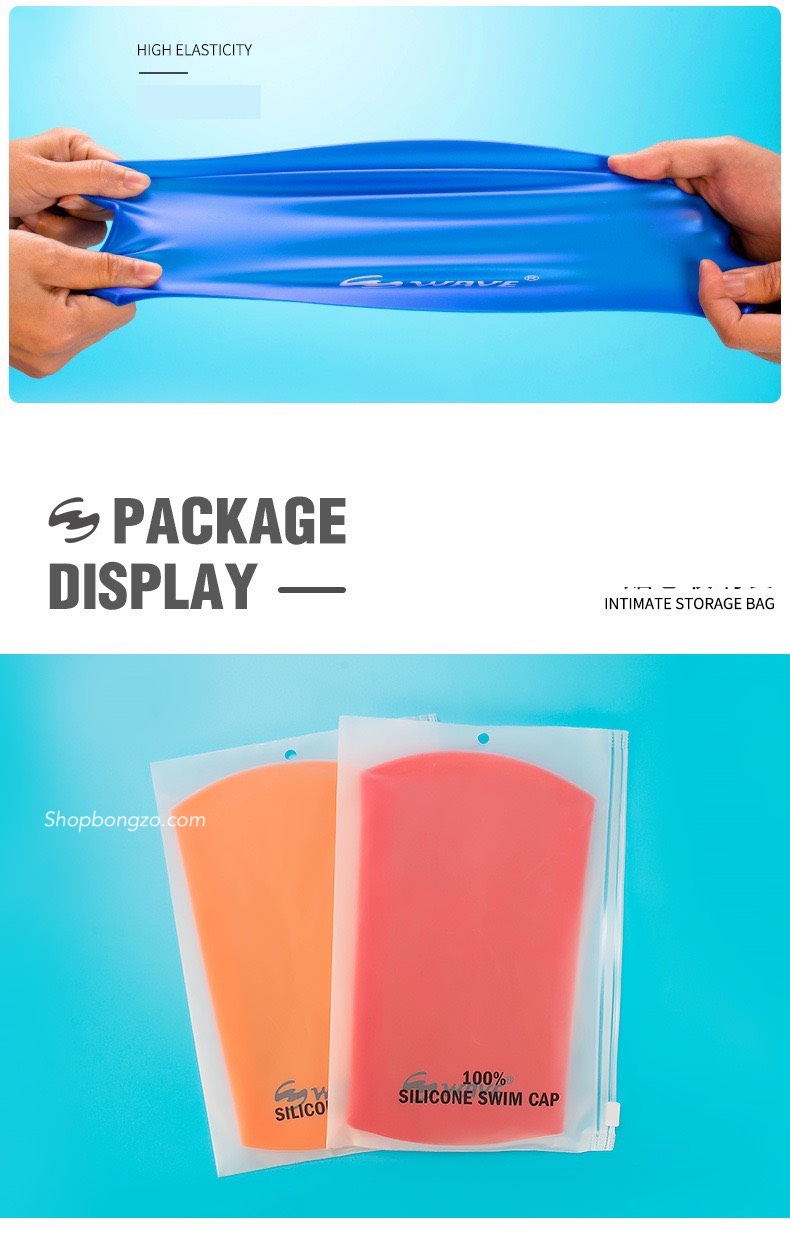 - Mũ bơi silicon có độ đàn hồi cao, ít bị giãn nhưng không chống thủng. Do đó, lưu ý không dùng móng tay và kẹp tóc khi đội mũ.