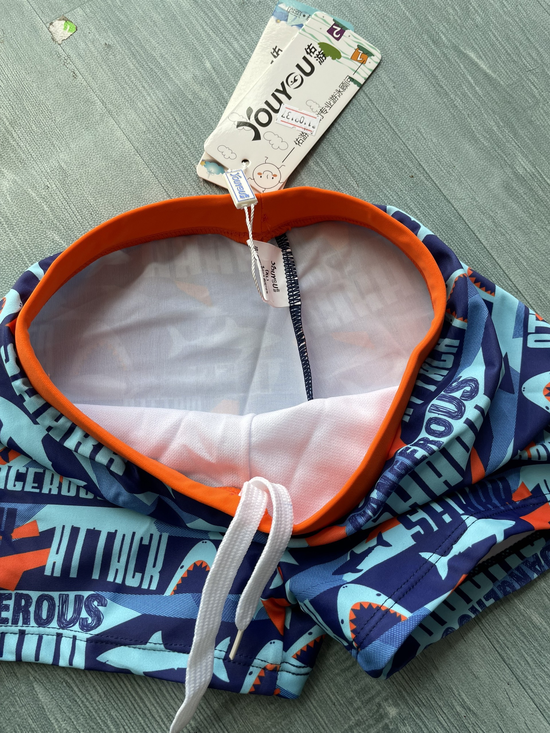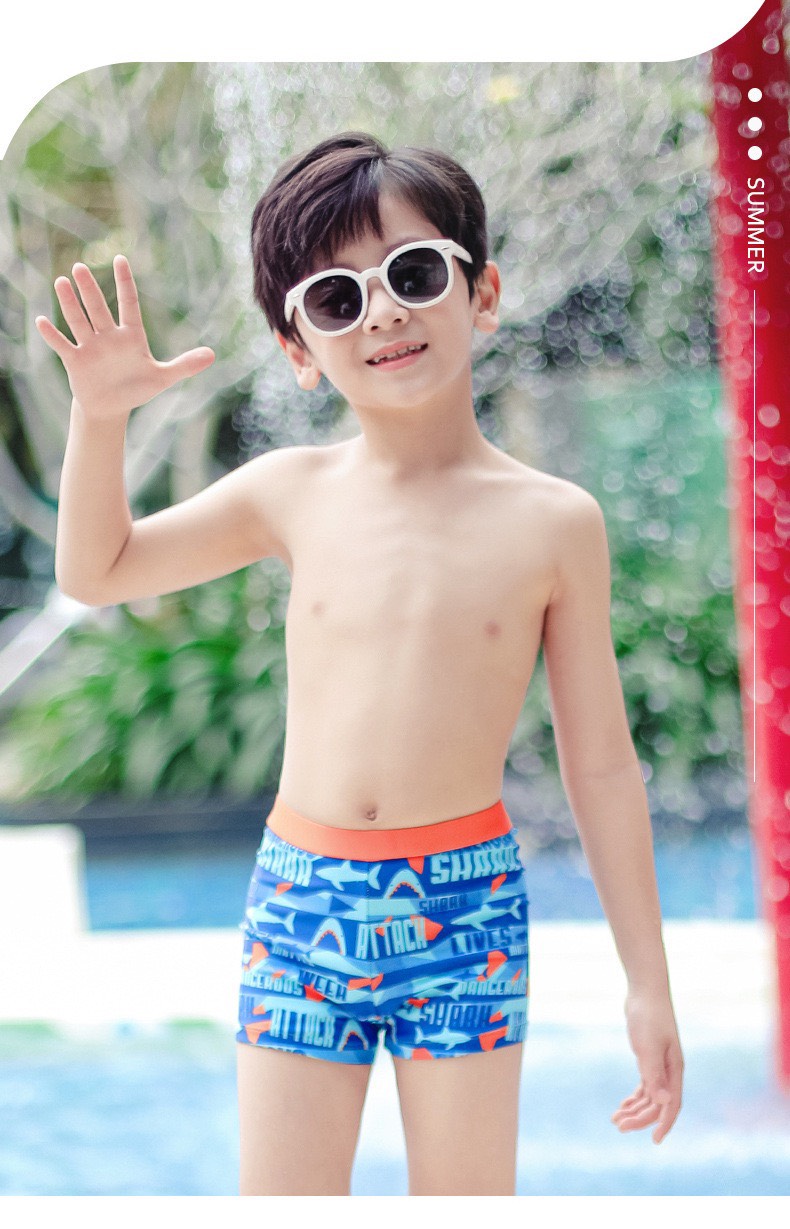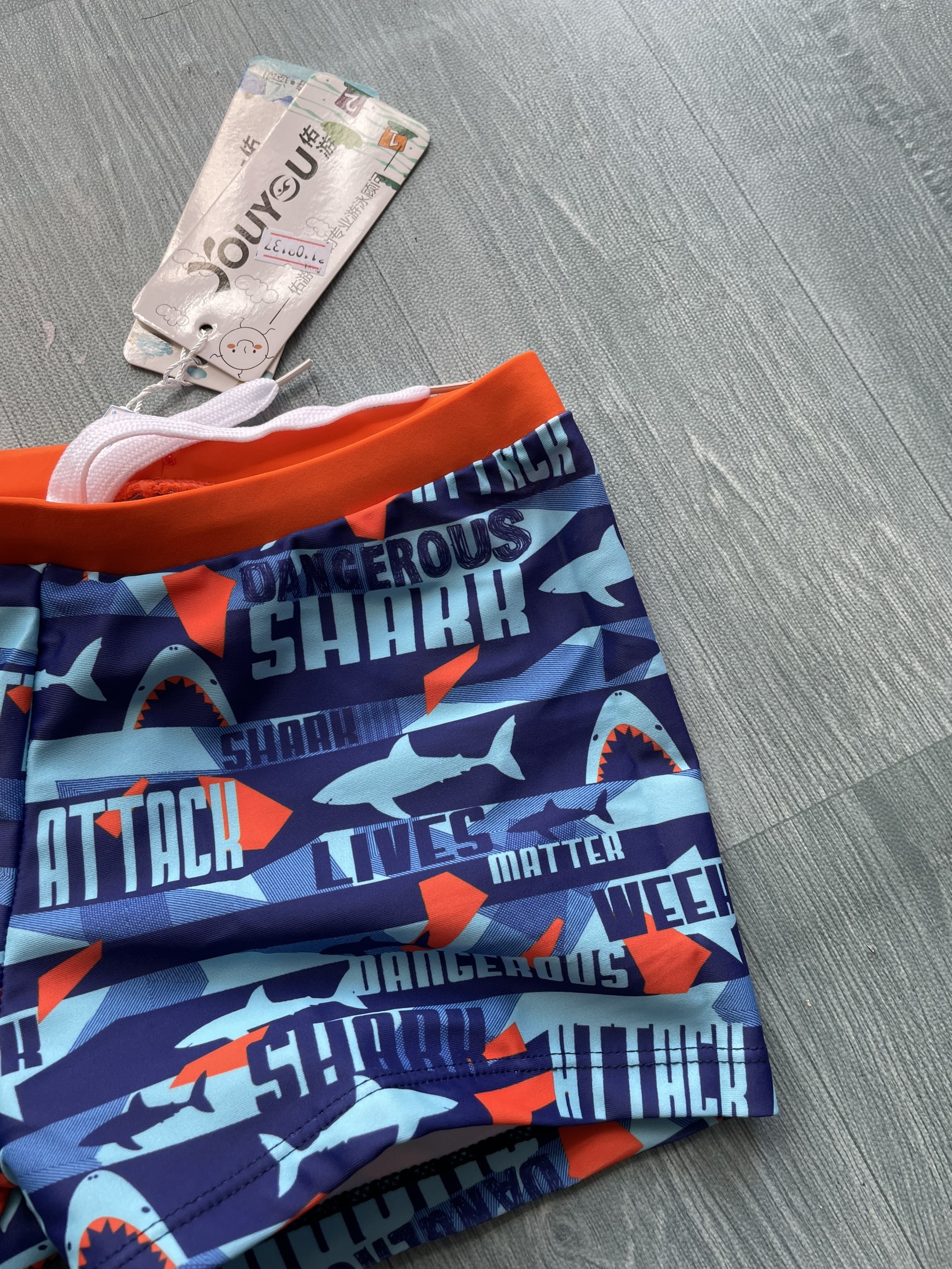 Quần bơi bé trai màu xanh cam, hình cá mập
