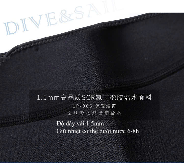 Quần bơi giữ nhiệt, dáng ngắn, màu đen, vải dày 1.5mm, DiveSail