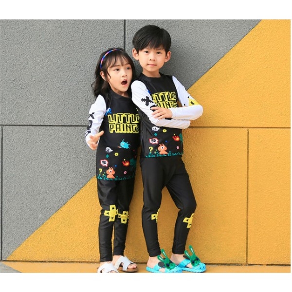 Bộ bơi giữ nhiệt bé gái, màu đen tay vàng, vải giữ nhiệt 2.5mm, Dive & Sail