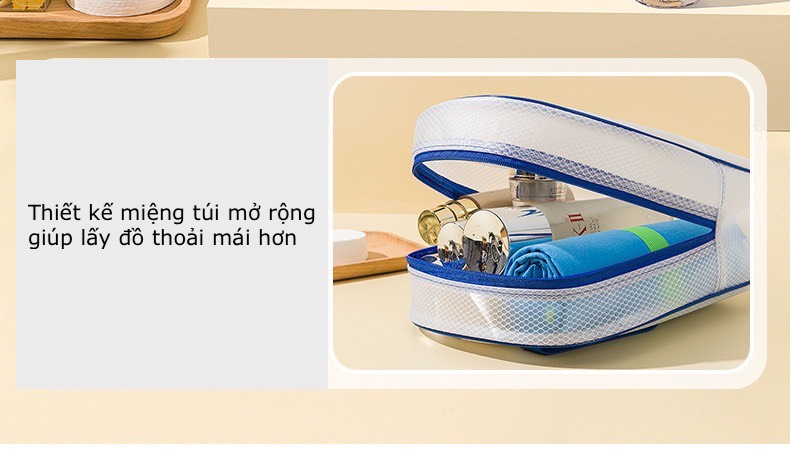 - Khoá kéo mở rộng miệng túi, giúp người dùng thao tác với đồ dùng dễ dàng và nhanh chóng thuận tiện.