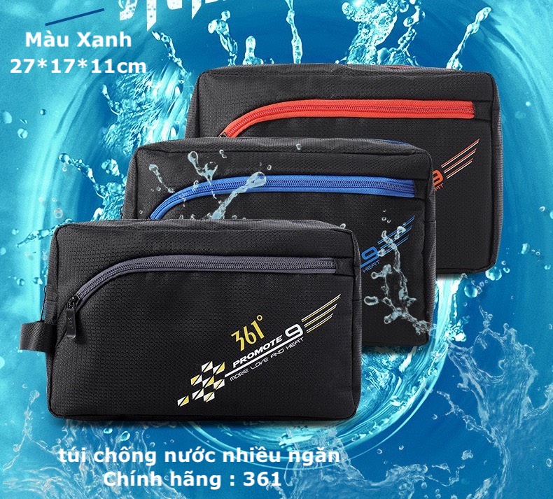 Balo chống nước cho bé, nhiều ngăn, màu xanh, hãng 361
