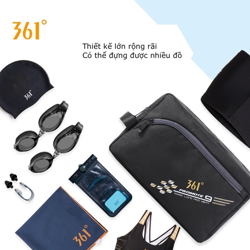 Túi bơi kéo khoá chống nước, màu đen, hãng 361