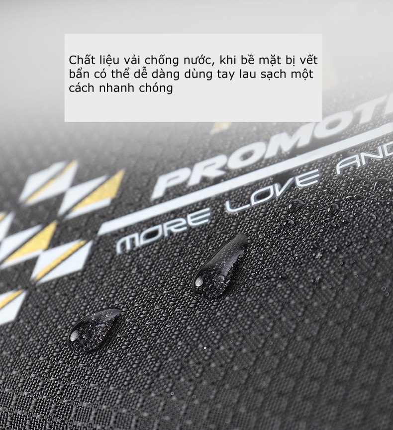 Chất liệu : vải chống nước, bề mặt vải thiết kế dễ dàng làm sạch vết bẩn bám bên ngoài.