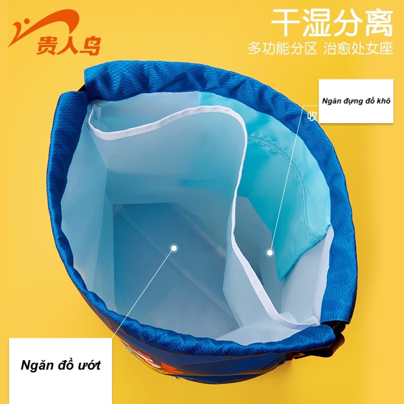 - Bên trong : phân thành 2 ngăn đựng đồ ướt & đồ khô riêng biệt. Thêm 1 ngăn nhỏ có kéo khoá đựng chìa khoá, điện thoại, ví,....