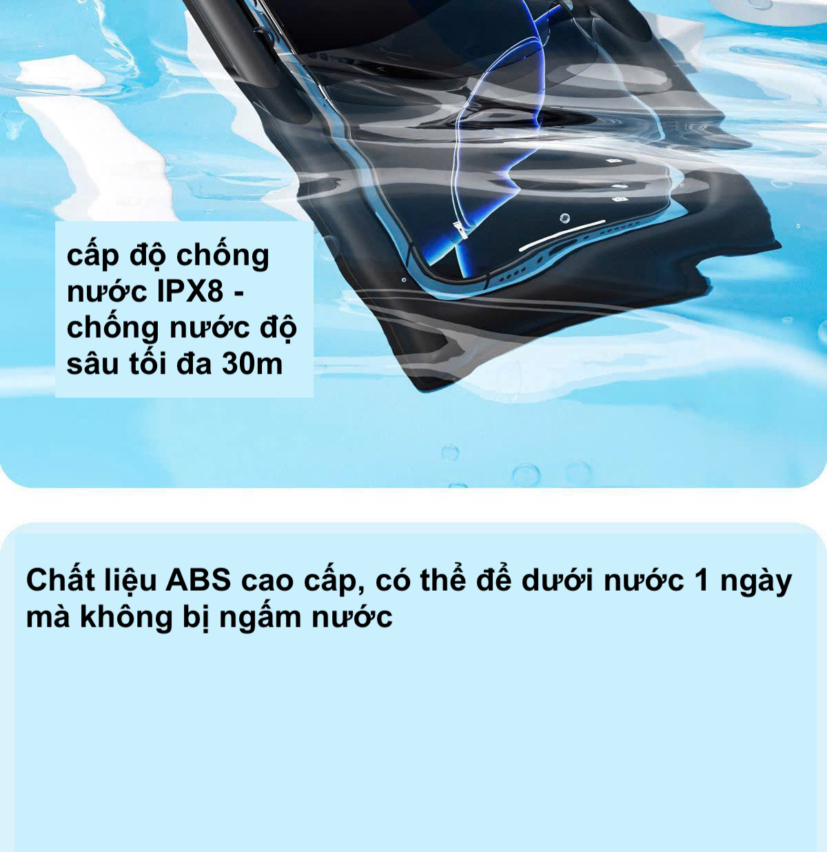 Bao / túi điện thoại chụp ảnh, quay dưới nước Kính thước phù hợp với hầu hết các thương hiệu điện thoại trên thị trường. Iphone : tất cả các đời máy hiện nay OPPO : R9/R11/R15/R17 VIVO : X9/X20/X21/X23 Huawei : P9/P20/P20 Pro Xiaomi : 6/8/MIX/MIX2S Thiết kế khoá cài đôi, chống nước và chống bụi Chất liệu trong suốt, chụp ảnh quay phim rõ nét Thiết kế khoá chắc chắn khả năng bịt kín tuyệt đối Thao tác khoá bấm đơn giản dễ dùng Chế độ xem độ nét cao, ghi lại khoảnh khắc đẹp bất cứ lúc nào Thiết kế kèm dây đeo, giúp điện thoại an toàn hơn khi sử dụng Điều khiển cảm ứng nhạy, thiết kế mỏng và nhẹ, phản hồi nhanh không khác gì dùng trực tiếp trên điện thoại Chống rò rỉ, khoá chặt, chống thấm nước cao và chịu được lực nén tốt Kính thước : 21 * 10cm Nhiều màu sắc thoải mái lựa chọn ĐỒ BƠI NHẬP CHÍNH HÃNG Xem hàng trực tiếp tại : 25 Nguyễn Chí Thanh - Ba Đình - Hà Nội Ship toàn quốc, nhận hàng kiểm tra trước Nhận hàng kiểm tra trước khi thanh toán Hotline / Zalo : 094 6886 012 - 034 994 0705 Map shop : https://maps.app.goo.gl/N1WBJNvGUfo6o1jp7?g_st=com.google.maps.preview.copy40.000₫ -