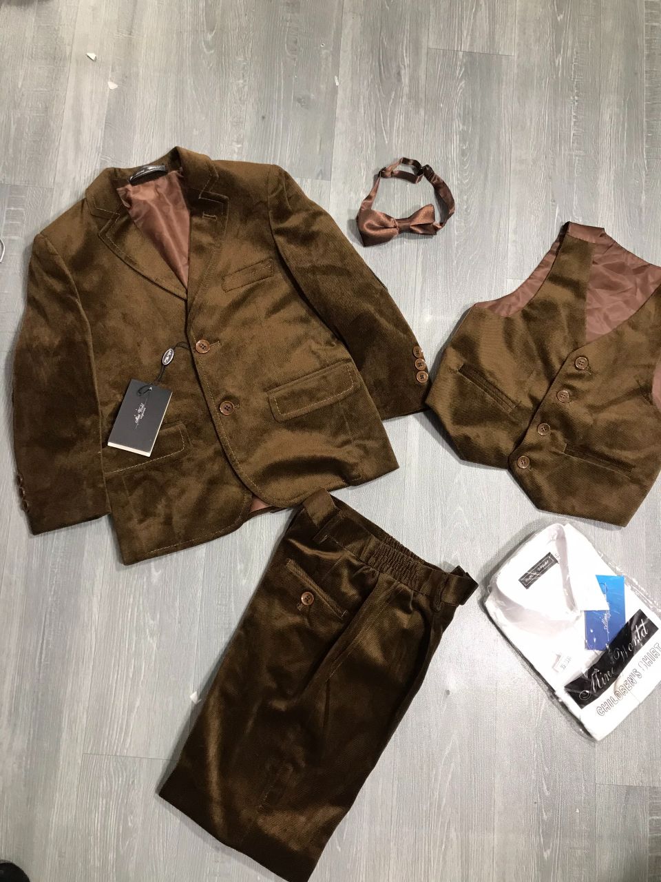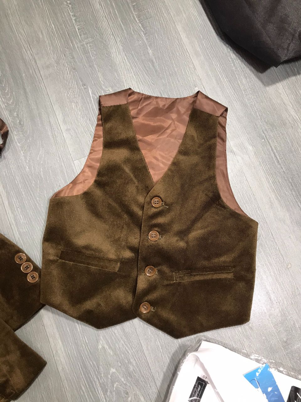 Set bao gồm : áo vest, gile, quần dài (chưa lên gấu quần, theo chiều cao của bé có thể tự lên gấu), cavart (nơ), túi đựng chính hãng.