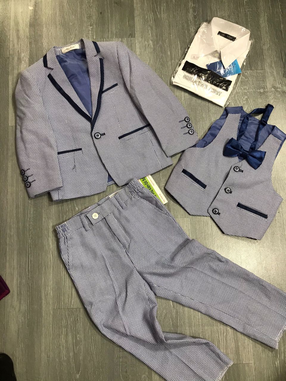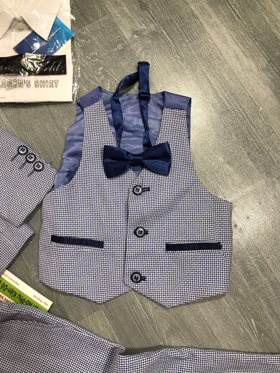 Set bao gồm : áo vest, gile, quần dài (chưa lên gấu quần, theo chiều cao của bé có thể tự lên gấu), cavart (nơ), túi đựng chính hãng.